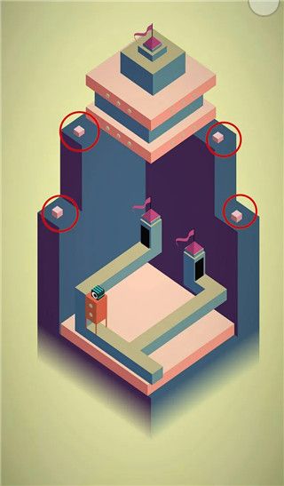 2、旋转带白点的四方体,观察四个小灯的颜色。当四盏灯颜色由紫色变为黄色时,第二层的门会旋转,就可以进门了。