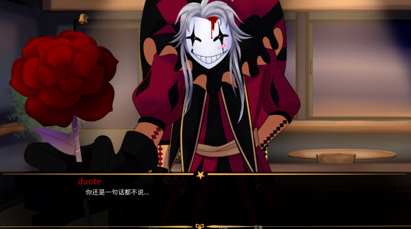 2、结局内容:主角被Harlequin设计为“演出道具”,在舞台上被肢解,尸体成为下一场表演的装饰品。画面以暗红手绘风格呈现,搭配动态文本“你的血,是今晚最艳丽的油彩”。