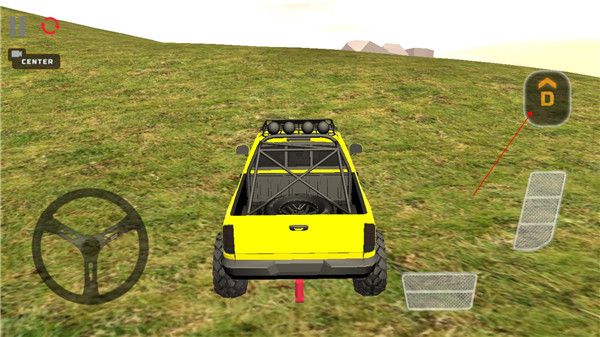 3、游戏以左边为轮盘控制方向,右边加油停止。点击右边上方的D即可倒车。