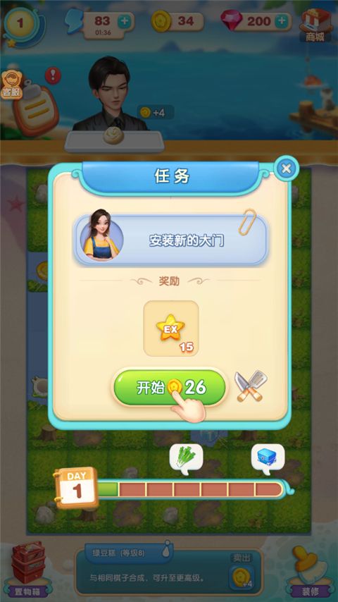 游戏的玩法也非常的简单,玩家需要通过二合一的简单合成玩法,合成美食,完成顾客的订单来赚取金币。当你获得足够的金币时,玩家需要通过花费金币修复破败的花田餐厅,对自己的餐厅进行装饰,如大门、座椅、墙壁、花园等等,你可以通过选择自己喜欢的装修风格,给顾客提供优美舒适的就餐环境,将自己的餐厅打造成花田市最好的餐厅。