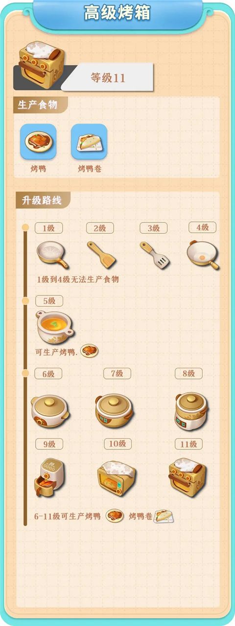 A:木铲-铁铲-平底锅-炒锅-炖锅(可生产烤鸭)-电煮锅(可生产烤鸭、烤鸭卷)智能电煮锅-蒸煮一体锅