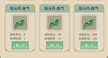 3、前往主页,点击商铺,把所有灵石用来购买培元丹、练气。