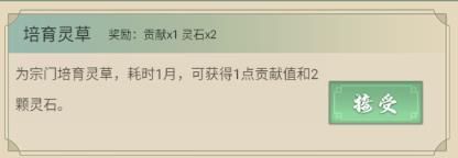 1、前往任务界面,点击第一个任务”培育灵草“,一直接受这个任务,直到道年来到第四年,领取剧情奖励。(请在任务详情界面中或设置中关闭任务详情显示,加快任务完成速度)