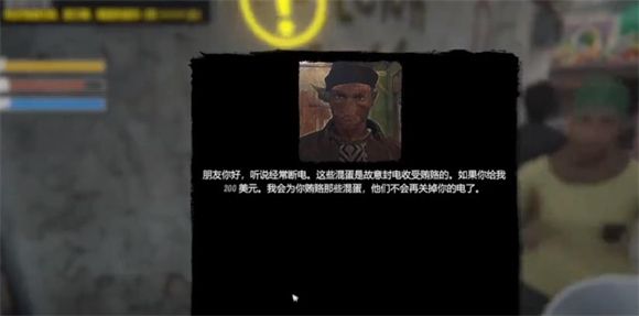 1、进入游戏后先去完成一个乞丐任务,完成后直接去网吧,打开卷帘门后开启电源。