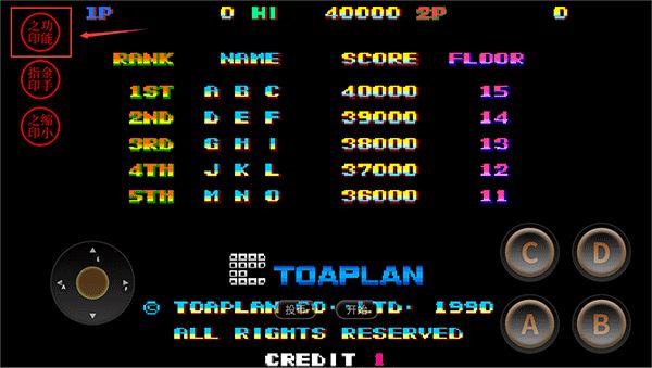3、设置完成后返回游戏开始界面,先点击投币,待CREDIT显示数字1时,再点击开始即可进入游戏