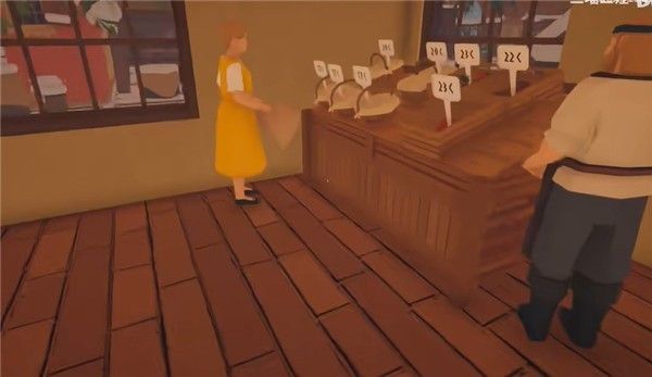 4、接下来就是订 购货物,穿过海上的独木桥前往码头,从大货船上采购商品,土豆、胡萝卜、鸡蛋、面包等都可以一次购买两箱,为摊位备足库存。