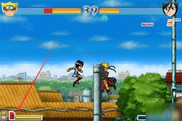 4、能量满3格后,同时按J键和K键,即可变身成为金色鸣人。