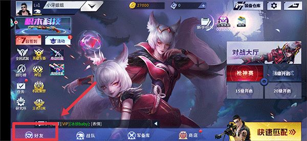 1、在游戏开始界面中,首先选择你要进行游玩的游戏模式,如:对战大厅