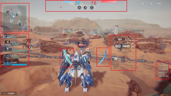 3、使用“Shift”可以消耗一定能量便机兵短距离冲刺,长按“Shift”则持续消耗能量时机兵快速移动。在腾空状态中按下“Alt”键则能操控机体进行快速下落。