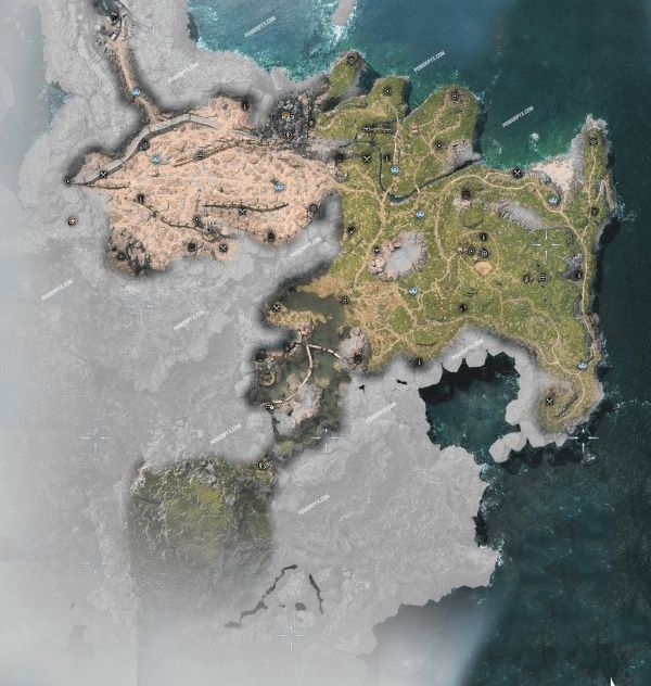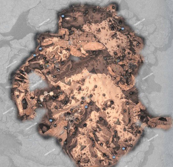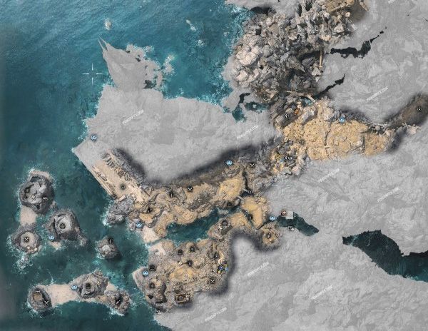 所有地图区域中都有无法探索的部分(灰色区域),放大之后发现这些部分比预计的面积要大很多,例如格拉斯兰西边和东南边的大部分地区都无法探索;贡加加只有一半的地图可以探索,东部三分之一和西北边的部分地区也是无法探索的。其他区域也是如此,大多都有一些永远也无法靠近的山脊,这也是地区之间的天然边界。