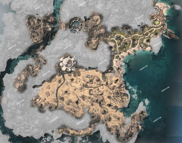 比较大的区域是格拉斯兰、科雷陆、贡加加。较小的区域有尼福尔、珠诺、星陨峡谷。这些区域中几乎都是可以探索的陆地,不包含无法探索的水域。中央海洋则是完全由海域和小岛组成。