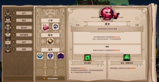 3、玩家获得的魔石可以在游戏失败后保留下来,在魔女处开启新的技能,从基础属性到特定大类头骨强化都有,强化玩家想玩的build。当然,作为一款Rouge类游戏,本作还是重局内的拼凑胜过局外的积累的。