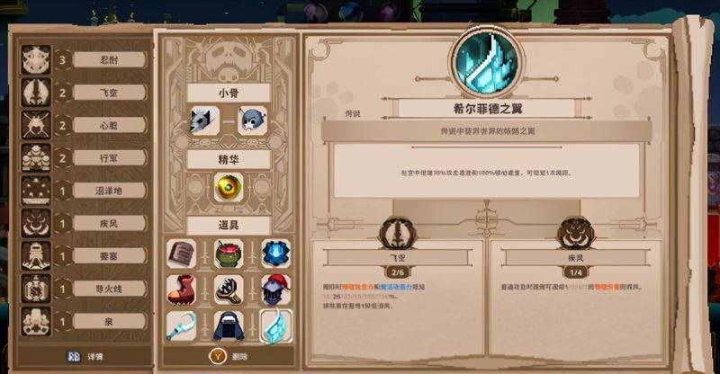 4、而除了头骨外,玩家在游戏中还有精华和九种道具可以获得,以此强化自身的属性,形成强力的build。如果暂时凑不出build,散件的效果也聊胜于无,完全可以凑合着先用,提升还是很明显的。