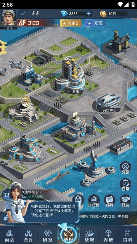 《海战前线》是一款以未来海域军事战争为世界观的放置卡牌策略游戏。游戏深度还原超多种类航母、驱逐舰、潜艇、战列舰等经典战舰,其搭载超多种类舰载机、导弹、装备、舰炮等经典军武,为万千军迷玩家量身打造超多组队闯关、PVP、跨服等玩法,玩家将在这里组建水域最强舰队,共同推演一场场酣畅淋漓的经典海战。史诗再现,超燃战斗,只为等待真正的统帅!