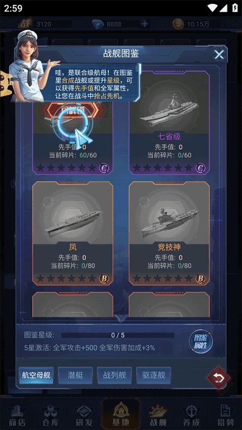 2、在战舰界面选择并点击“图鉴”的选项,进入图鉴界面;