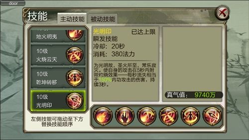 自身防御技能,能在一定时间内免疫多次伤害。打架时若释放得当,可规避敌人的大量伤害和致命一击,从而扭转战局。后期加满之后,你就明白明教真正的厉害了。