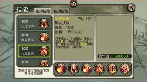 单体伤害技能,并附带持续灼烧效果。短时爆发不高,属于持续伤害技能。可在天地熔炉之后升级。