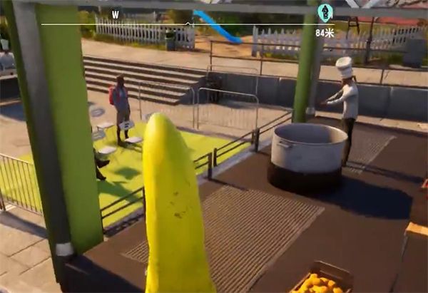 我们只需要一直吹脏东西即可,因为不停有人往里面丢东西所以得多弄一会儿,嫌麻烦就去旁边一个大脸招牌下面拿一个恐怖电影道具,可以控制那些路人不来捣乱。