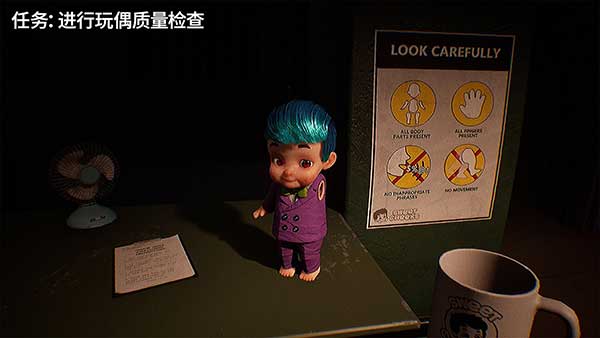 你接受了一家玩偶工厂的可疑工作邀请。检查玩偶的缺陷和异常。遵循奇怪的协议。别被炒鱿鱼,好好活着。