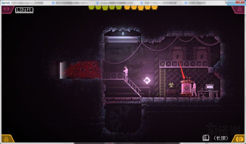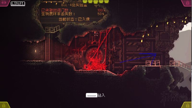进去之后走右边那个红灯门,左边是拿到隐藏遗传物质后离开的路。