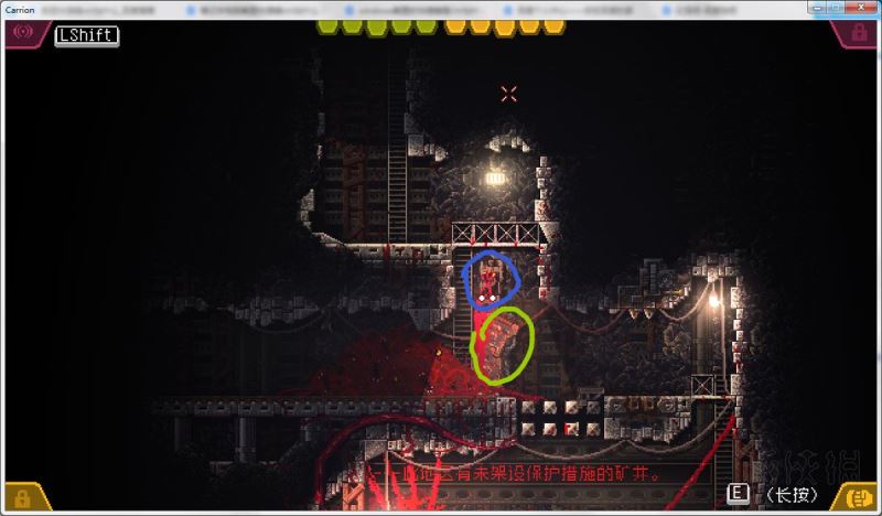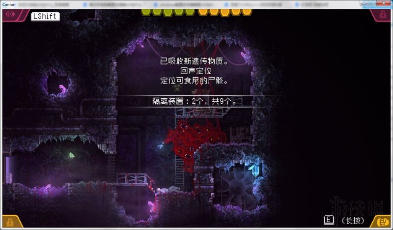 回声定位作用:按左SHIFT发出吼叫,声波碰到可食用的尸体会反射回来(反射的颜色是红色)