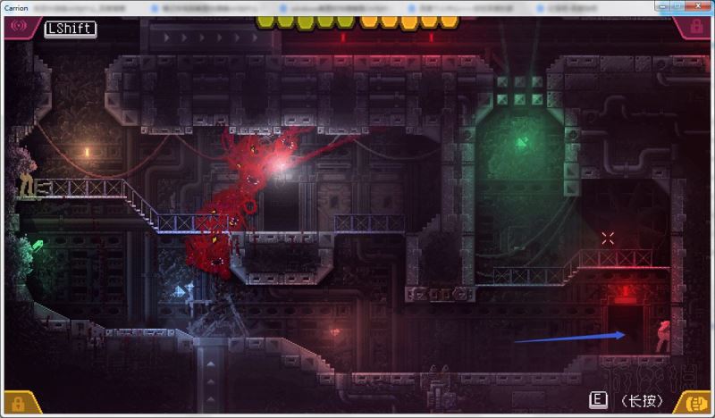 上面的门是厚铁门,红怪无法打开它。这扇门由激光控制,只要激光还是激活状态,它就会一直打开,相反就会关闭。