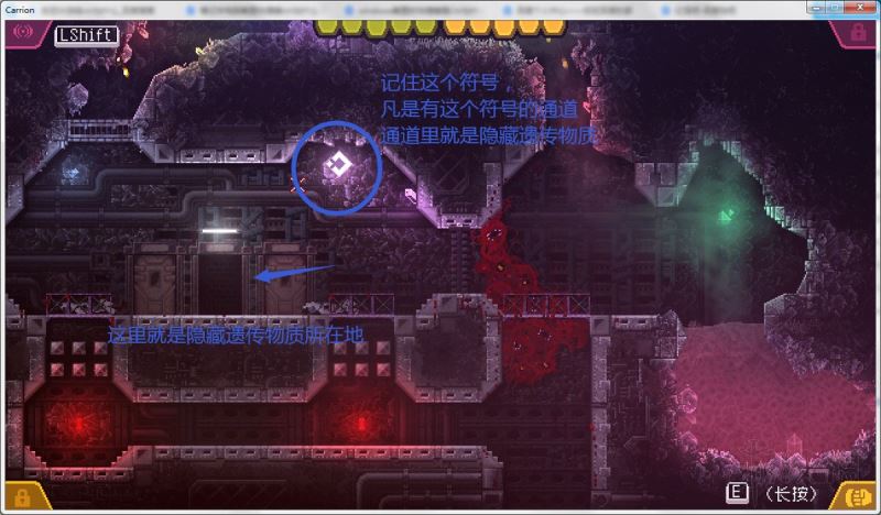最右边就是隐藏遗传物质的通道,进入通道需要:刀状突刺技能和趋水性蠕虫技能。