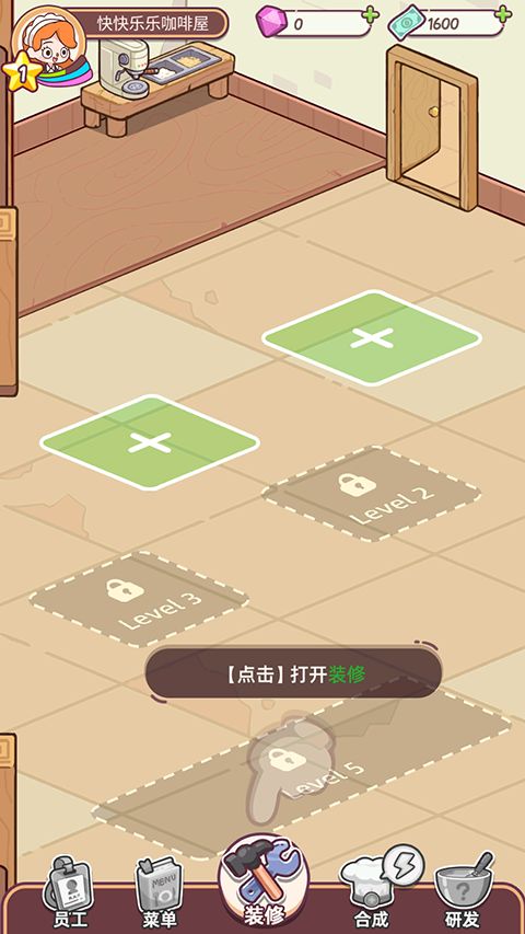 1、进入游戏玩家可以选择个地方开始建设咖啡馆。