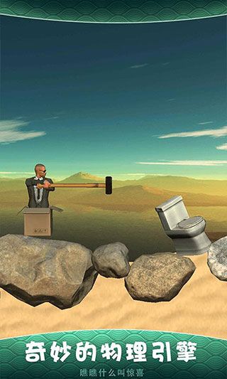 1、游戏开始时,你出现在一个充满石头的野外,下半身被困在一个罐子里,手边只有一个大锤可用。