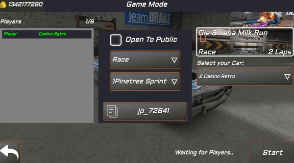 1、进入到赛车界面通过点击“Multiplayer”,创建好房间。