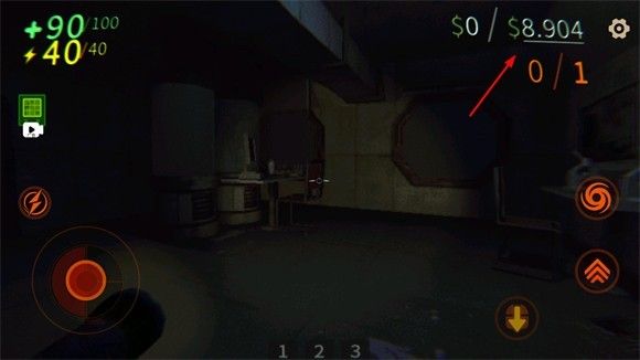 4、点击新游戏后会进入地图,正式开始后左边控制移动,右边是跳跃、蹲下,翻滚按钮。中间下方的123是口袋,可以放入拿到的物品。