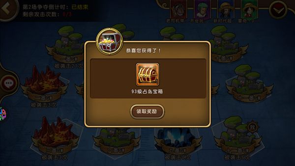 2、奖励的宝箱数就是当天领地战中获得的岛屿数量。宝箱可以开出名望值,材料包和人物碎片还有人物专属。人物碎片和专属目前是豪格巴克,塔希米,基德,罗。(这可是免费获取罗的唯一途径,喜欢罗的船长们千万不要错过哦)