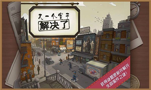 又一个案子解决了官方正版是一款题材独特的冒险解谜类手游。游戏也主要是围绕糖果大盗的抓捕进而展开各种各样的调查活动,看似内容有些凌乱,实际上游戏套路是比较清晰的。在游戏玩法上,玩家需要通过像连连看这样的消除机制收集足够多的侦探点数,通过这些点数寻找线索完成任务。玩法虽然略显奇葩,但是破案的过程还是非常丰富有趣的,玩家即要通过各种对话找到最终人物,也要在城市中搜寻到犯人的藏身位置。尽管又一个案子解决了这款游戏的画面谈不上多么亮丽,但要是说朴实的话,那它一定是实至名归的,你所看到的画面既有些诙谐,又不过份浮夸做作,一种复古泛黄的色调和怀旧的人物着装很容易让人回溯起福尔摩斯时代,而这种独特的画面设定也能够让人沉下心来办好每一件案子。