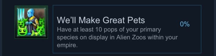 在你的帝国中,至少10个主要物种的人口被展览在异星动物园中 有大于9个主要物种的人口在异星动物园岗位中。