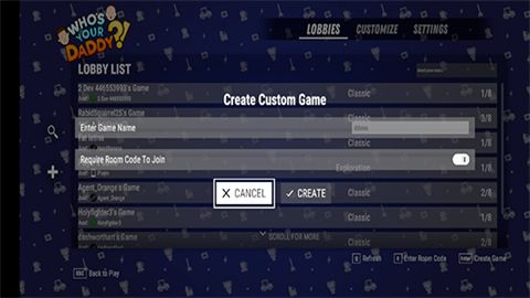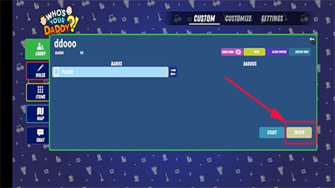 3、只需在定制大厅中填写房间名称并选择游戏模式,如经典或休闲模式,再邀请好友加入。