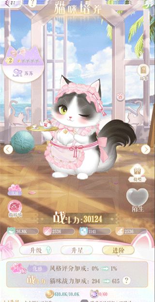 1、猫咪可以通过升级,升星和进阶三个方式进行养成,提升战力,升级需要消耗喵币,可以通过小镇经营和猫咪演出应援获得。