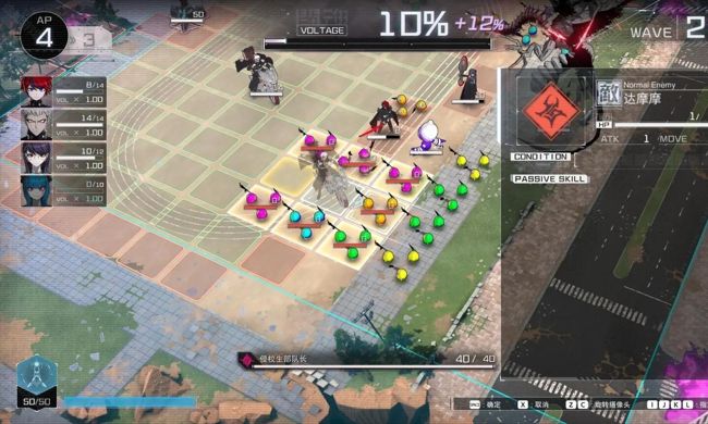 以守卫学院的「防护装置」为目标,将四名角色转变为防守队伍。同时,严格限制四位角色的共用行动点(AP)值,并为每个角色添加隐藏的“体力值”,敌人和角色的数值均被严格控制在个位数。
