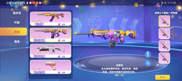除了人物装扮外,你甚至可以在游戏里为自己的爱枪涂上缤纷的色彩!比如金色系的“法老”装扮,还有萌系可爱的“破坏兔”装扮,以及粉嫩的“兔美美”装扮。值得注意的是,这些武器都要从武器幸运箱中开出来,有一日限定、三日限定、七日限定和永久装扮这四种。能不能永远拥有这些可爱的装扮,就看大家的运气啦!