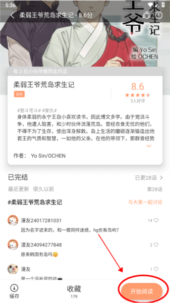 选择其中一个结果,点击进入,并点击右下角的“开始阅读”就可以看漫画了。