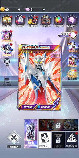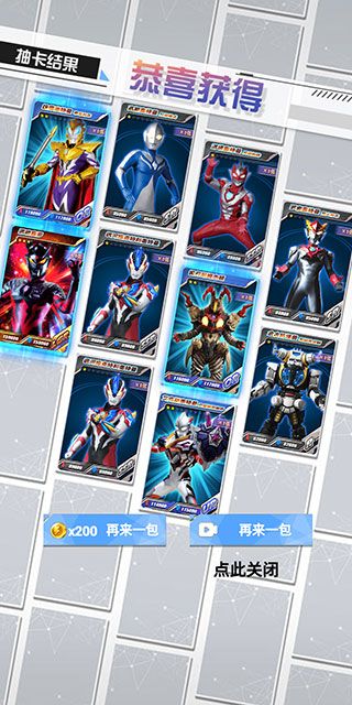 3、经典卡牌收集系统,传奇光之巨人悉数登场,超级怪兽再起波澜。
