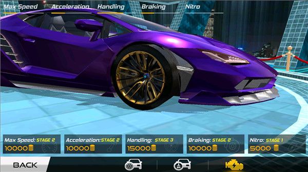 5、你甚至还能够对赛车的各个配件部分进行升级,以此来提高赛车的性能;