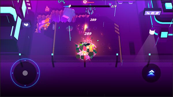 1、下载安装好克隆人霓虹危机,进入游戏,左边是控制人物移动的方向键,右边是滚动键控制人物的翻滚。