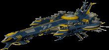 德莱斯特雷伽级万能战斗母舰1号舰「德莱斯特雷伽」。结合了可搭载大量人型机动兵器的航空母舰的功能和作为战术中心的战舰的功能。它是一艘全长2公里的超大型三体舰,其主机是一个黑科技大型螺旋雷射串列压缩光量子热核融合炉。舰体的各部位都有人型机动兵器的出击闸门,特别是在舰体上方中央的超级机器人垂直出击闸门后方,有一个巨大的机库,可以容纳多架大型机。