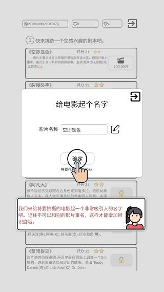 2、解锁不同的电影题材和故事情节剧本,选择喜欢的去进行尝试和拍摄