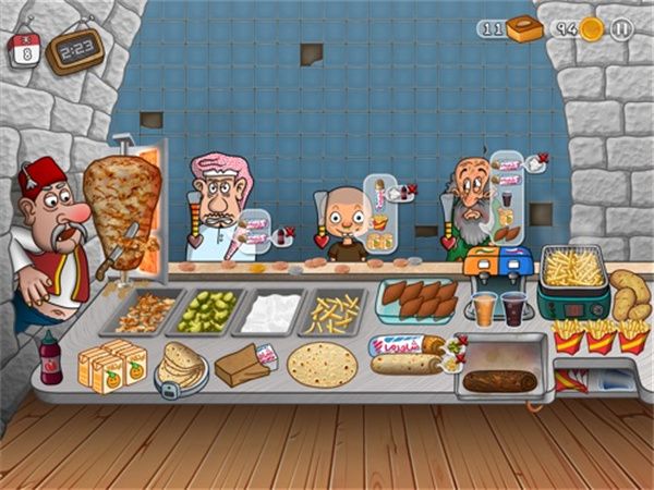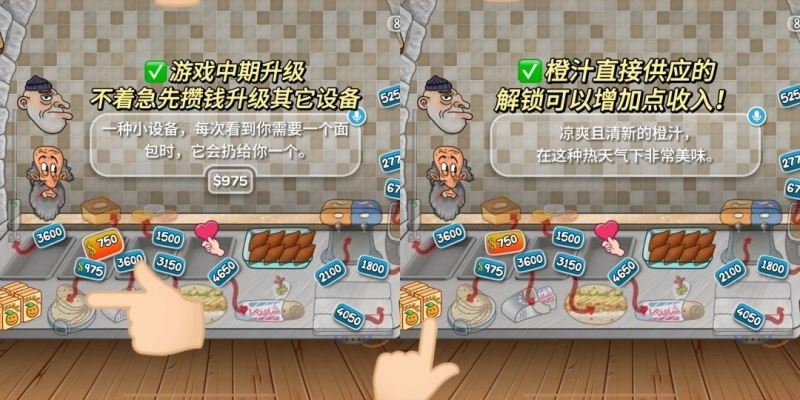 里面的美食制作设备、员工可以进行升级,升级后玩家则不需要手动添加配菜、收钱、装饮料了,可以有更多的时间用来制作三明治赚钱,与竞争餐厅一较高下,争取成为城里最好的沙威玛大厨!