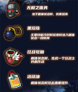 当然除了以上全新道具以外,游戏中的道具池当中,还有一些其他道具,也是属于霸体类型的,根据不同类型的搭配选择,与不一样的技能会擦出不一样的火花。玩家可以亲自到游戏中进行搭配尝试体验一下。