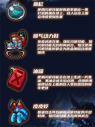 接着就是闪避类型的道具了!正面迎敌是一种战斗方法,撤退自然也是可以的,所以在这个全新版本的游戏当中,有一些道具是支持闪避效果的,可以为玩家带来一定战术性的效果,从而发挥出距离大作用。在这里小编就不多举例说明了,玩家可以根据自己的需求在战斗之前,自由组合搭配一下,摸索道具到底哪些可以与什么技能搭配发挥出最佳效果。
