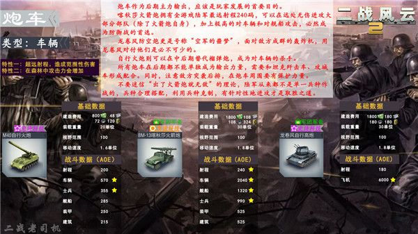 1、炮兵在中前期可谓是中流砥柱的作用,反坦克炮和榴弹炮更是属于必出军备,但是它龟爬一样的速度、1分钟的进入阵地时间等设定被很多玩家诟病,相比这样的“缺点”,在森林中所增加的攻击力显得过于微小。