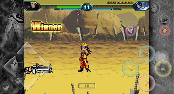 死神vs火影官方正版是5DPLAY工作室根据热门动漫改编的一款横版动作格斗手游,游戏延续经典街机画风,虽然画面简约,但是该有的特效一个也不少,震动、闪光、慢放、放大、炫酷的技能施放,打击感爆棚,很有小时候玩红白机的感觉!同时对于玩法和操作上,玩家只需选择要出战的角色后,再操控着他们释放技能,感受种类繁琐的技能连招,以达到击败对手即可获得游戏胜利,还有虚拟操作键盘,滑动屏幕即可体验震撼的动作盛宴!