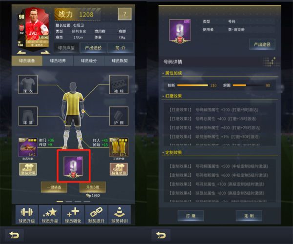 当你为球员选择了专属号码后,除重生外你将不能对号码做出改变,所以选择时要慎重考虑号码!选择完毕就可以对它进行打磨与定制,从而提升它为你带来的属性收益。
